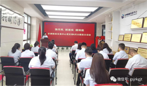 近日,甘肅股權交易中心黨支部召開“強作風,抓落實,提效能”主題黨日活動。支部書記樊亞娟主持會議,全體黨員及員工參加。