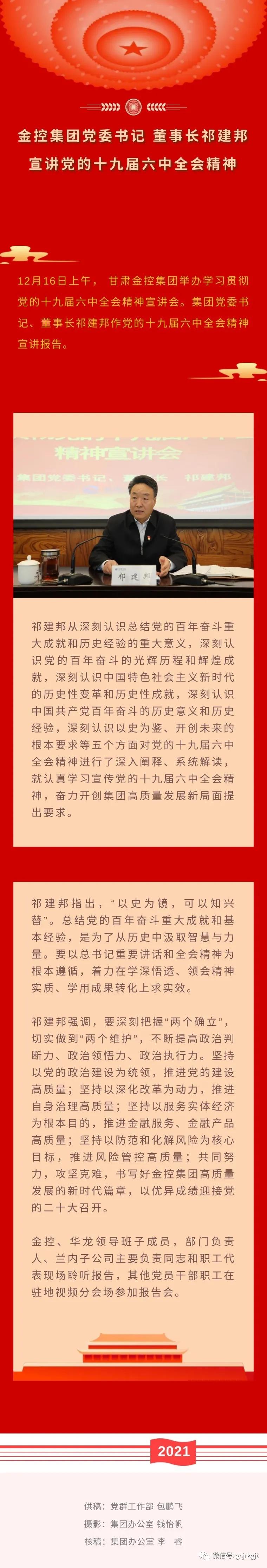 金控集團(tuán)黨委書記 董事長祁建邦宣講黨的十九屆六中全會精神