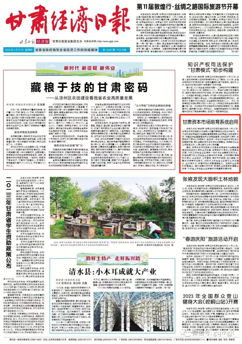 新甘肅客戶端蘭州訊(新甘肅·甘肅經(jīng)濟日報記者 蘇海琴)4月26日,甘肅資本市場培育系統(tǒng)啟用儀式暨專題培訓會在蘭州舉行。本次活動由甘肅省地方金融監(jiān)督管理局聯(lián)合甘肅省工業(yè)和信息化廳、中國證券監(jiān)督管理委員會甘肅監(jiān)管局、深圳證券交易所、甘肅股權交易中心共同舉辦,旨在進一步優(yōu)化我省資本市場生態(tài)和營商環(huán)境,強化金融科技與資本市場深度融合,共同做好企業(yè)上市培育工作,從源頭提升上市公司質量。