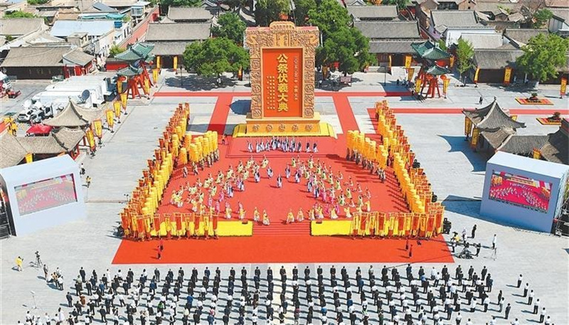 隴山蒼蒼,渭水泱泱。伏羲廟廣場蒼松挺拔、旗幡列張、鐘鼓和鳴、雅樂繞梁。中華兒女聚首羲皇故里,懷虔敬之心,秉傳承之念,獻太牢,奉雅樂,致祭于人文始祖伏羲。
