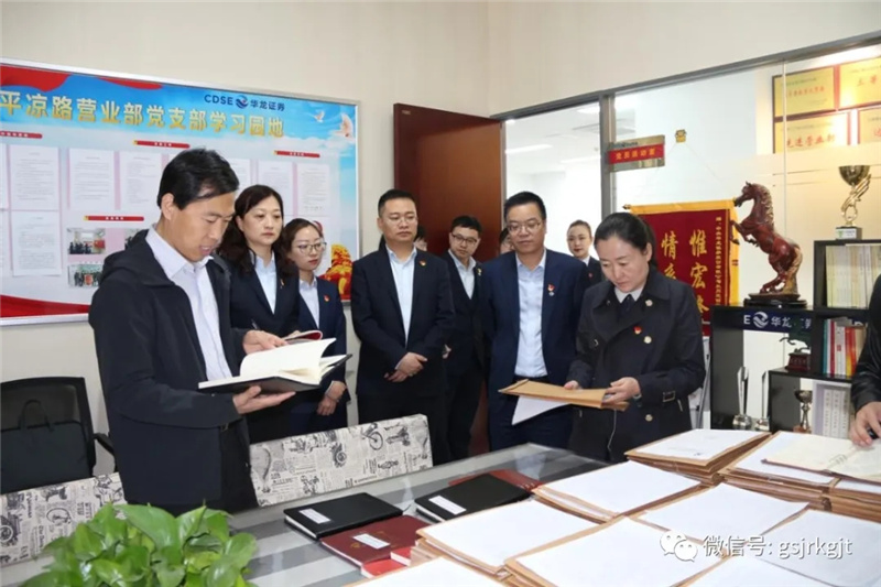 考核組還對金控集團華龍證券2020年度黨建工作責(zé)任制落實情況進行了民主測評、個別談話,查閱了黨建基礎(chǔ)資料,并對金控集團辦公室、金控?fù)?dān)保集團、華龍證券蘭州平?jīng)雎窢I業(yè)部等基層黨組織黨建工作情況進行了現(xiàn)場檢查。
